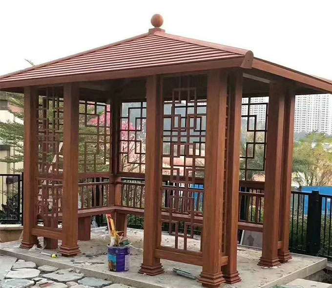 厦门波涛现代农业开发有限公司凉亭系列产品是采用高强度铝合金为原材料,经酸洗铬化,电泳或静电喷涂,木纹转印处理后,精密定制设计,保障安装。它具有防水防潮,不膨胀不变形,防腐蚀,具有逼真的木质感。成为别墅住宅及市政园林等建筑美丽的风景。